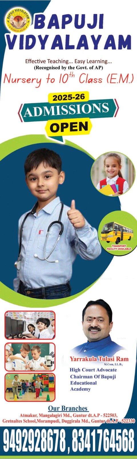 Established in the year 2012, Bapuji Vidyalayam in Atmakuru Mangalagiri,Guntur listed under Schools in Guntur